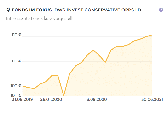 Beim DWS Invest Conservative Opportunities handelt es sich um einen noch jungen Fonds. Er wurde Ende August 2019 aufgelegt und kam somit „gerade rechtzeitig“ zum Corona Crash. Für einen Fonds mit einem Aktienanteil von mitunter 50 Prozent war der maximale Verlust mit 8,1 Prozent relativ moderat.