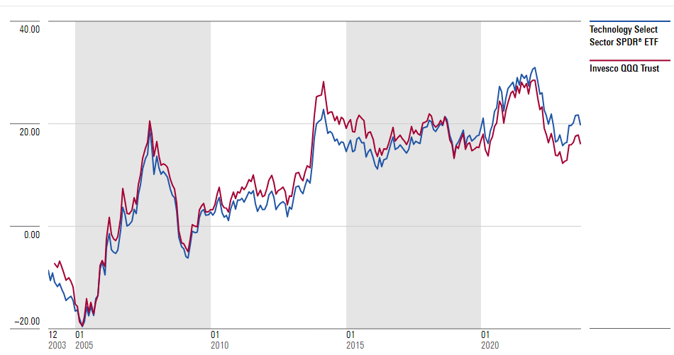 Wer etwa zwischen 2000 und 2005 in Tech- oder Nasdaq ETFs investierte, musste einen Verlust von knapp 20 Prozent jährlich verkraften. Wer zwischen 2005 und 2010 dort investierte, landete bei einer jährlichen Rendite von deutlich unter fünf Prozent.