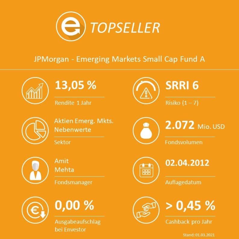Der JP Morgan Emerging Markets Small Cap Fund verfolgt im Vergleich zu einem Small-Cap ETF einen aktiven Investmentansatz. Und gerade in einem weniger effizienten Teilbereich des Aktienmarktes – wie eben den Schwellenländern – ist durch aktives Management echter Mehrwert zu erzielen. Denn insbesondere Unternehmen aus dem Small-Cap-Bereich der Schwellenländer werden von Analysten häufig nicht beobachtet und analysiert. Somit haben Fondsmanager, die eine solche Nische besetzen, die Chance auf substantielle Outperformance. Aktuell ist der JP Morgan Emerging Markets Small Cap Fund einer der Top-Seller in der Envestor Community.