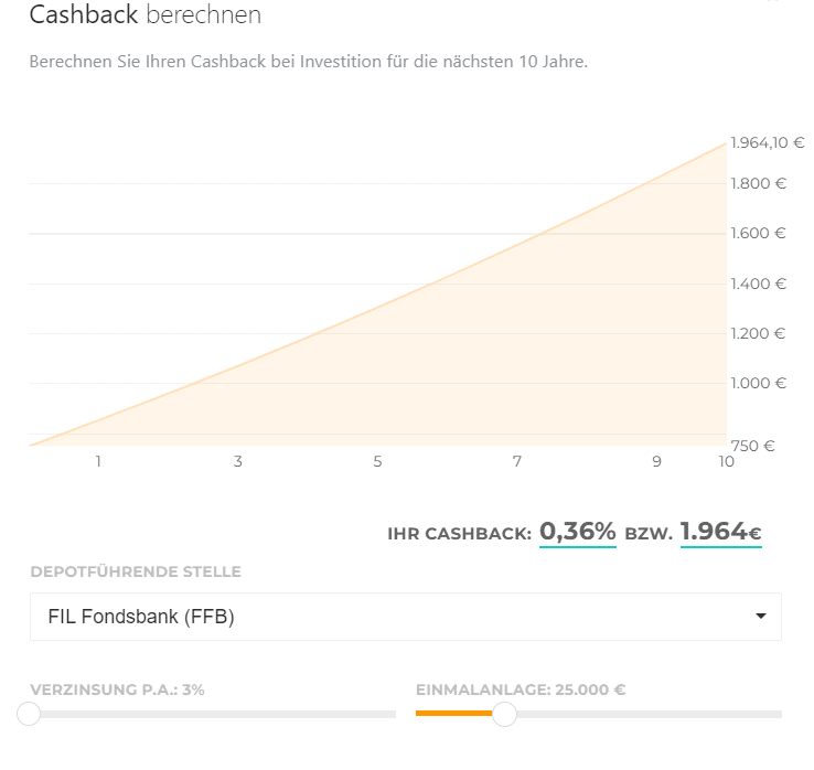 Mit laufenden Kosten von 1,46 Prozent zählt der Jupiter Dyanmic Bond zu den teuren Rentenfonds am Markt. Es fällt keine Performance Fee an. Kunden von envestor machen bei dem Fonds einen ziemlich guten Schnitt. Beim Kauf fällt bei envestor kein Ausgabeaufschlag an, und wer keine Beratung benötigt, profitiert vom envestor Cashback. Die besten Konditionen bietet bei diesem Fonds die FIL Fondsbank (FFB) – 0,36 Prozent des Fondsvermögens erhalten Anleger bei envestor zurück, die den Fonds bei der Fidelity Fondsbank verwahren lassen – und zwar jedes Jahr. Bei einer Investitionssumme von 25.000 Euro und einer angenommenen jährlichen Rendite von drei Prozent entspräche der Wert des envestor Cashbacks bei der umgehenden Wiederanlage in den Jupiter Dynamic Bond nach zehn Jahren 1.964 Euro.