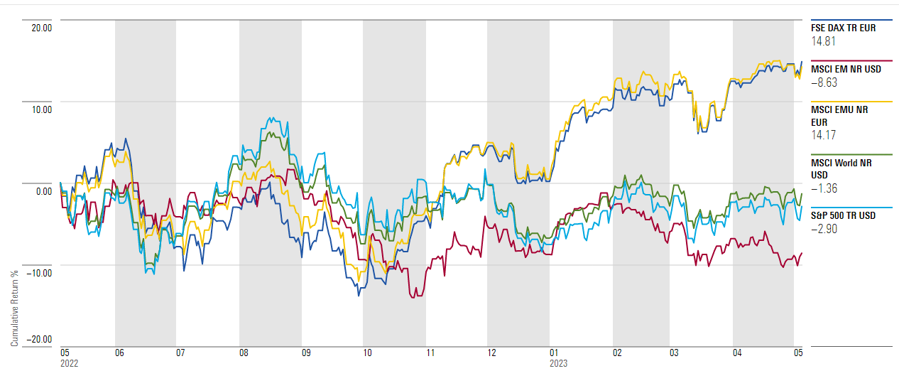 Einjahres-Performance in Prozent und in Euro, per 5.5.2023, Quelle. Morningstar