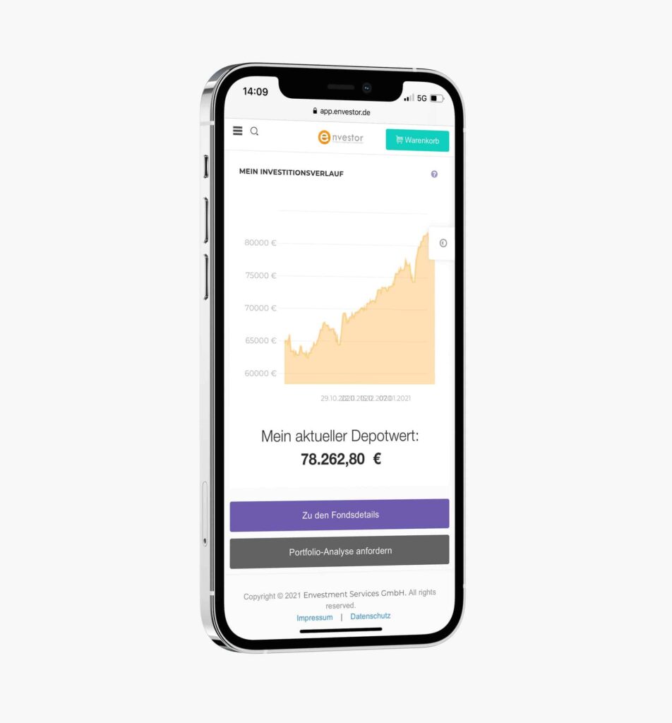 Die Envestor Depotansicht ermöglicht Ihnen einen schnellen, stets aktuellen Überblick über Ihr Fonds- und ETF-Portfolio – auch von unterwegs. Denn diesen Service erreichen Sie nicht nur vom heimischen PC aus, sondern auch mobil via Smartphone oder Tablet.