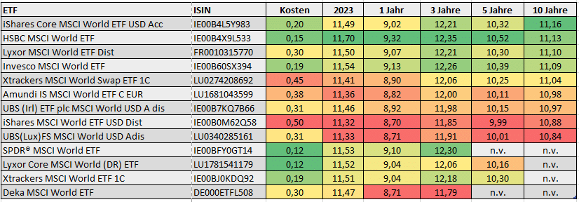 MSCI World ETFs: Die Performance